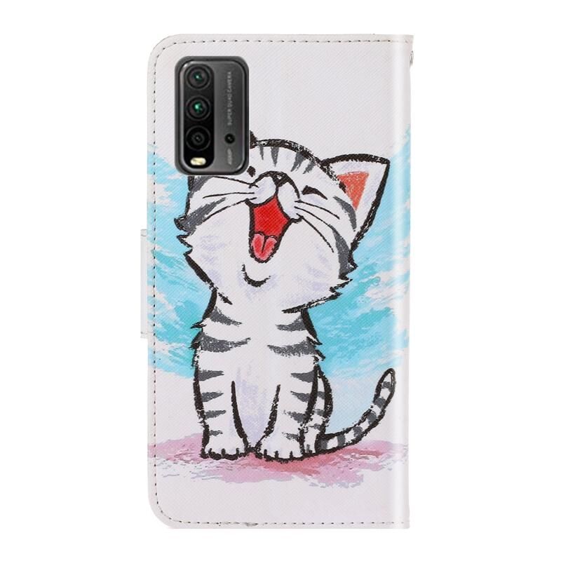 Θήκη τηλεφώνου δερμάτινη με έγχρωμη τρισδιάστατη σχεδίαση για Xiaomi Redmi 9T (Κόκκινο Γάτα με στόμα)