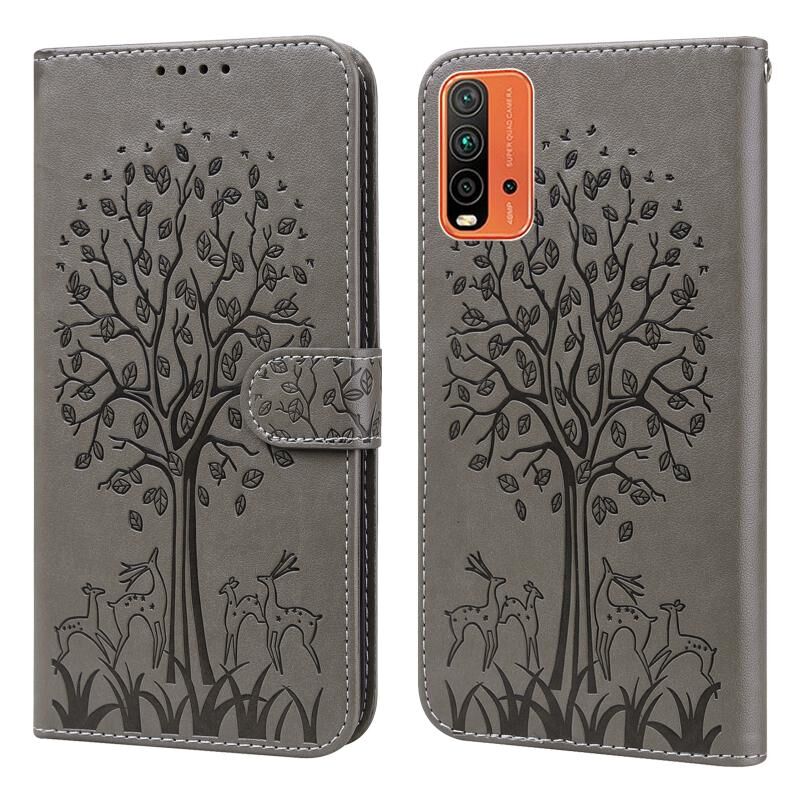 Θήκη τηλεφώνου από δέρμα με σχέδιο δέντρου & ελαφιού, τύπου flip, για Xiaomi Redmi 9T / 9 Power (Μωβ)