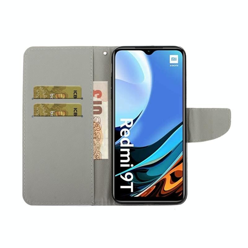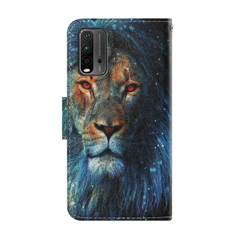 Θήκη για Xiaomi Redmi 9T με πολύχρωμο σχέδιο, οριζόντια αναδίπλωση από δερματίνη PU με βάση στήριξης & θήκες για κάρτες & πορτοφόλι & κορδόνι (Λιοντάρι)