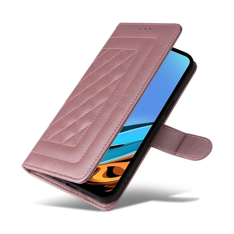 Για Xiaomi Redmi 9T Diamond Lattice δερμάτινη θήκη Flip Phone Case (Rose Gold)
