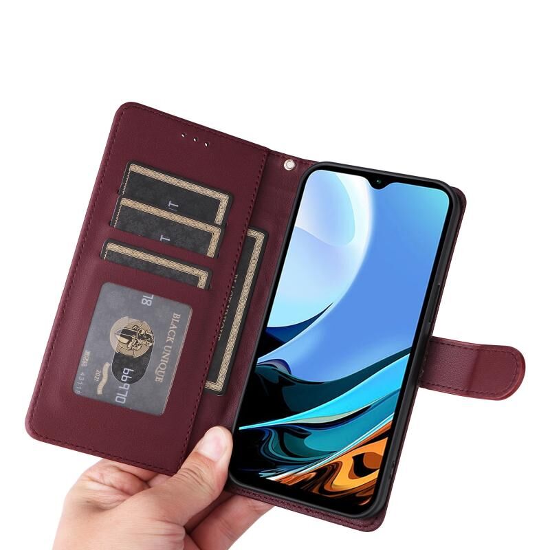 Για Xiaomi Redmi 9T Diamond Lattice δέρμα Flip υπόθεση τηλεφώνου (κόκκινο κρασί)