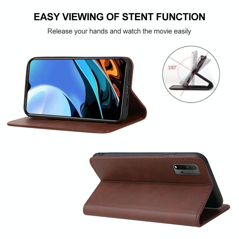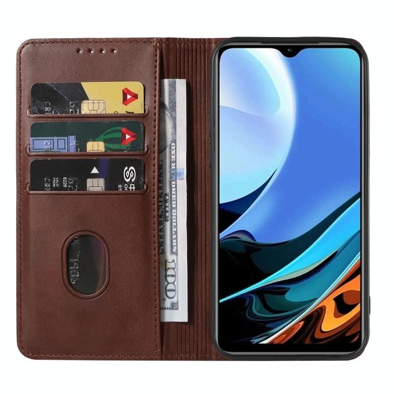 Για Xiaomi Redmi 9T Μαγνητικό κλείσιμο δερμάτινη θήκη τηλεφώνου (καφέ)