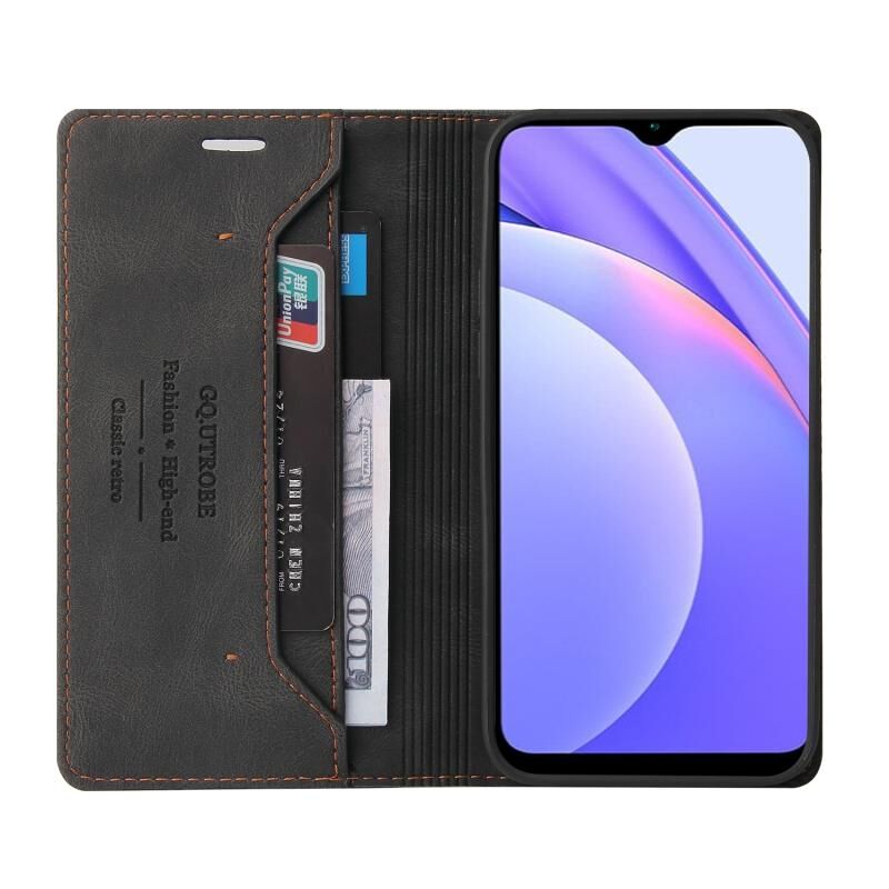 Για Xiaomi Redmi 9T Skin Feel Anti-theft Brush Οριζόντια Flip δερμάτινη θήκη με θήκη & υποδοχές καρτών & πορτοφόλι (Μαύρο)