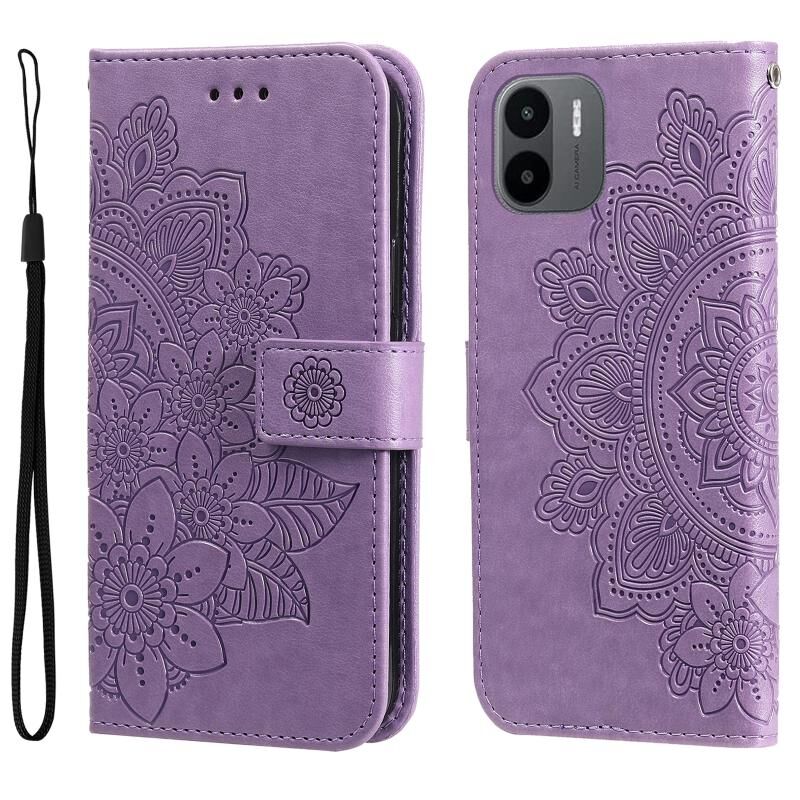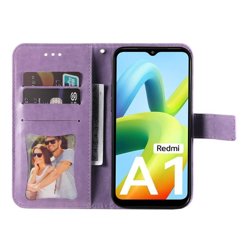 Θήκη τηλεφώνου δερμάτινη με ανάγλυφα λουλούδια 7 πετάλων για Xiaomi Redmi A1 4G (Χρυσό Ρόδι)
