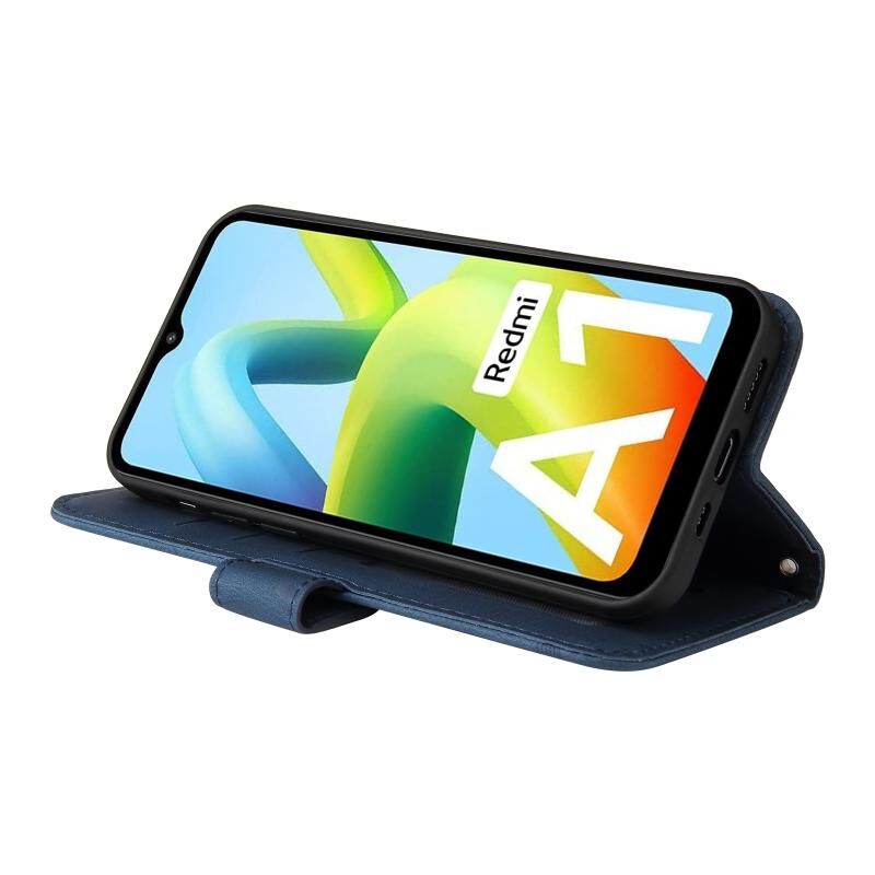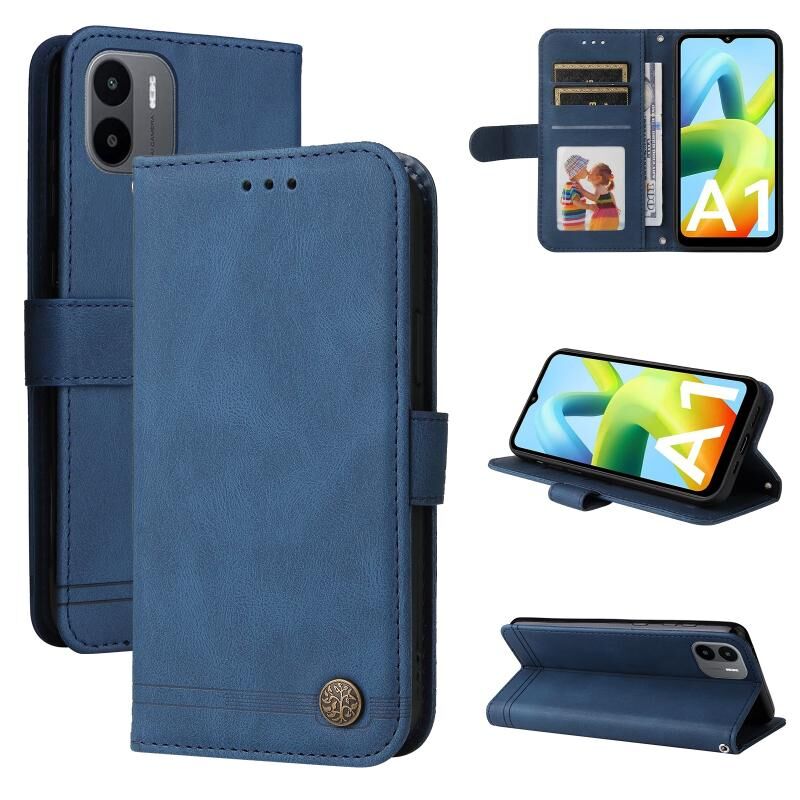 Θήκη τηλεφώνου Xiaomi Redmi A1 4G με μεταλλικά κουμπιά και δερμάτινη υφή, σχέδιο Δέντρο της Ζωής (Μπλε)