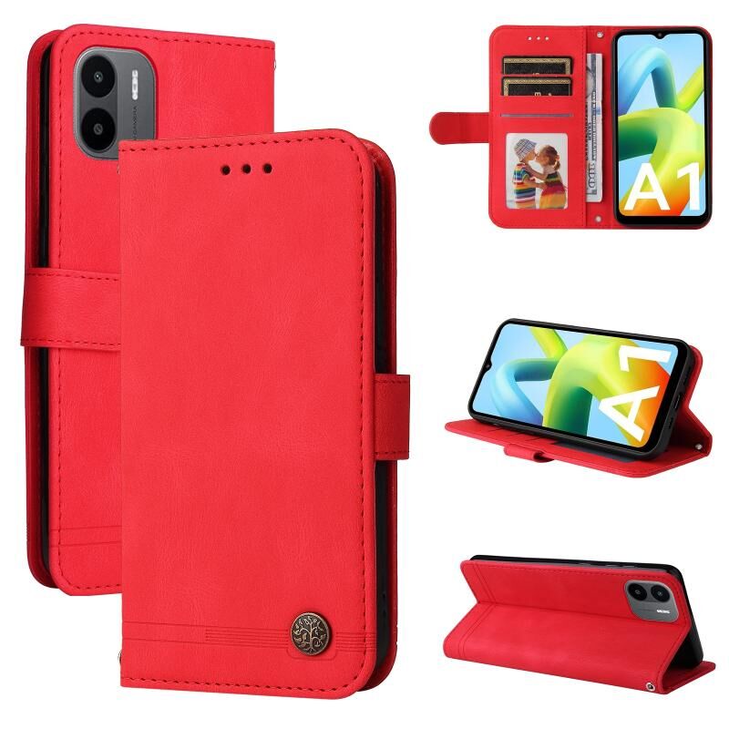 Θήκη τηλεφώνου Xiaomi Redmi A1 4G με μεταλλικά κουμπιά και δερμάτινη υφή, σχέδιο Δέντρο της Ζωής (Μπλε)