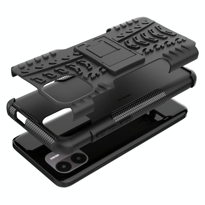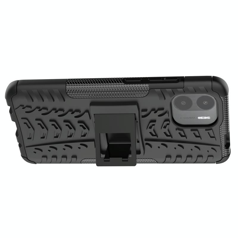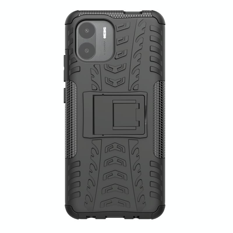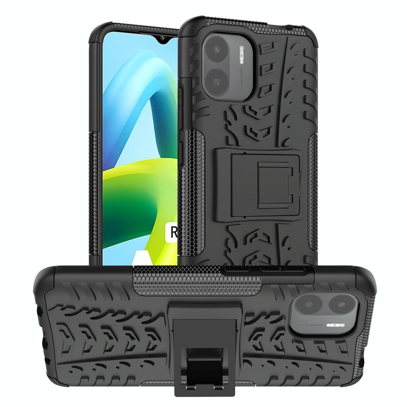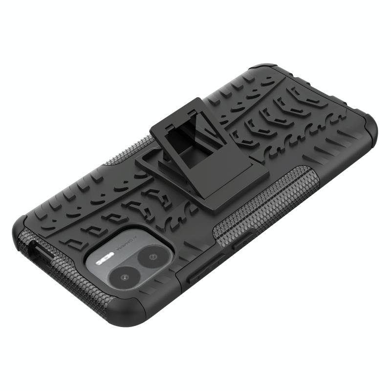 Θήκη κινητού τηλεφώνου για Xiaomi Redmi A1 4G με υφή ελαστικού + PC και βάση στήριξης (Μαύρο)
