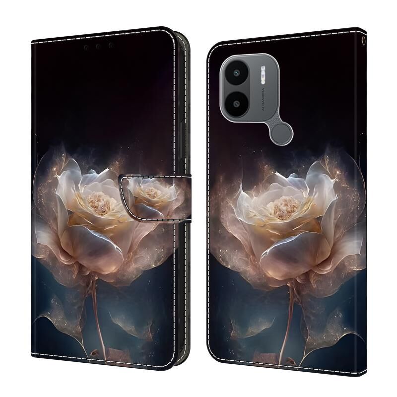 Θήκη τηλεφώνου από δέρμα με κρυστάλλινη βαφή για Xiaomi Redmi A1/A1+ (Παιώνια)