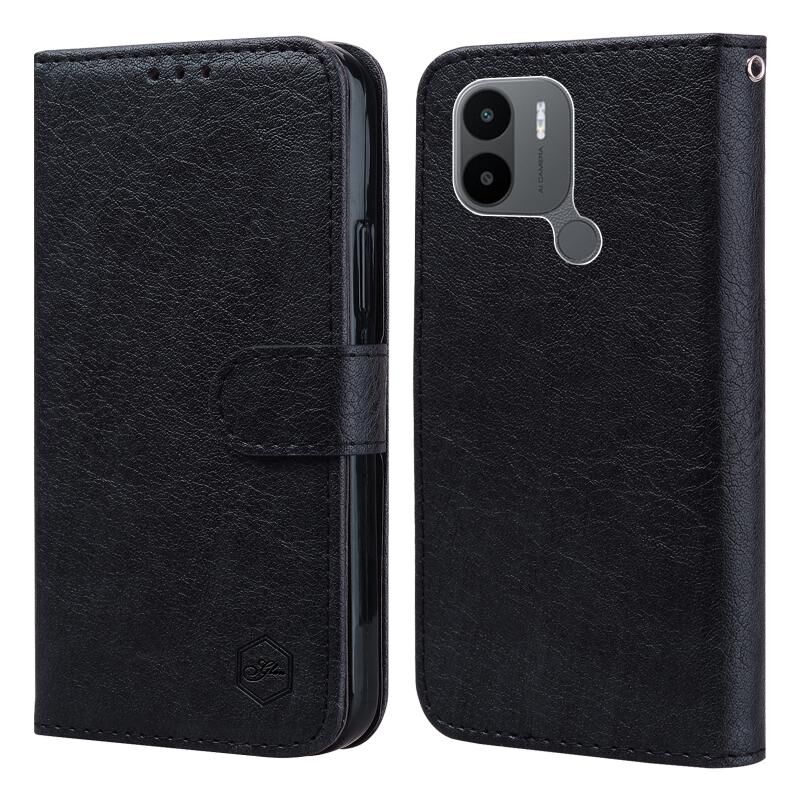 Θήκη κινητού τηλεφώνου Xiaomi Redmi A1 / A1+ με υφή δέρματος λαδιού PU + TPU (Μαύρο)