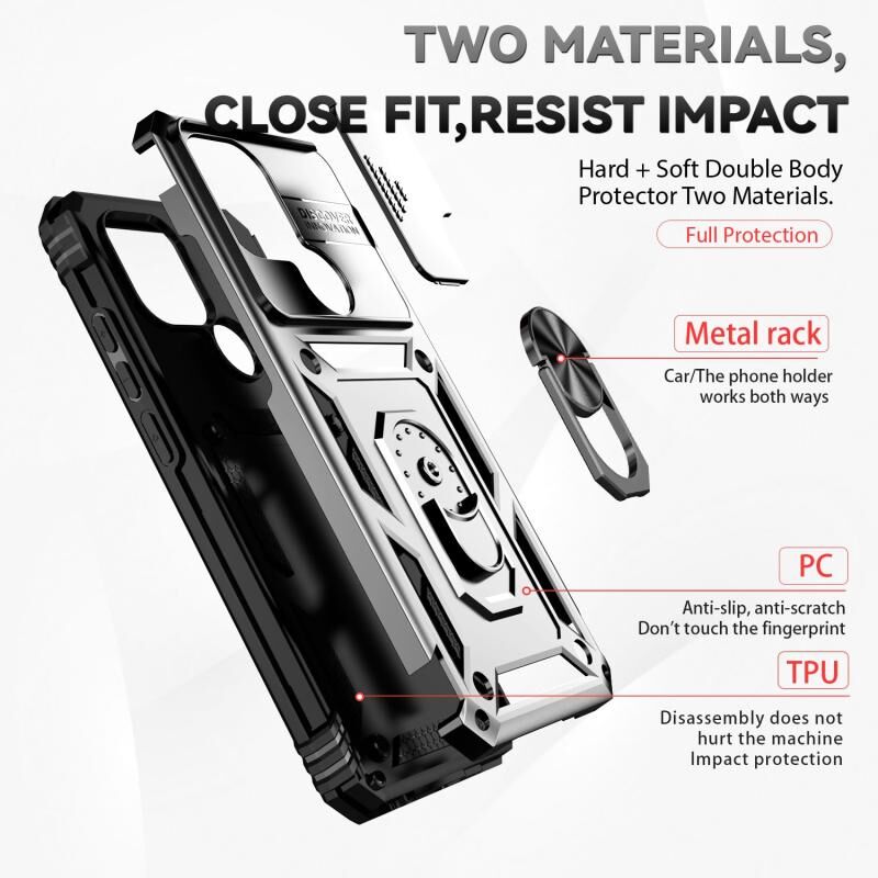 Θήκη κινητού τηλεφώνου με συρόμενο προστατευτικό κάμερας για Xiaomi Redmi A1/A1+ (Ασημί)