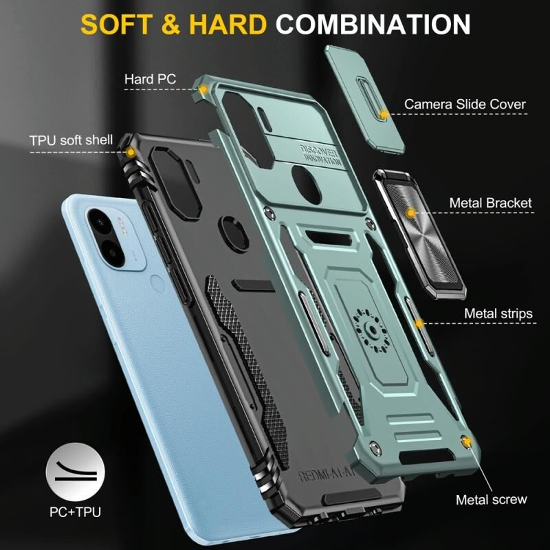 Για Xiaomi Redmi A1 Armor PC + TPU κάμερα ασπίδα τηλέφωνο υπόθεση (Alpine Green)