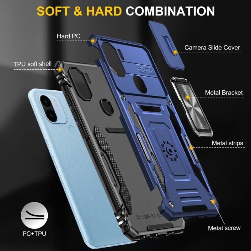 Για Xiaomi Redmi A1 Armor PC + TPU κάμερα ασπίδα τηλέφωνο υπόθεση (Navy Blue)