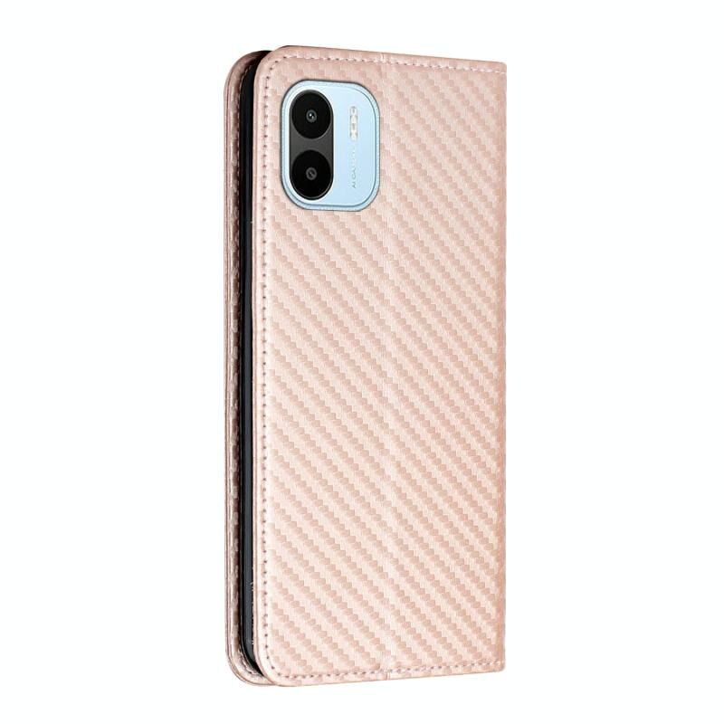 Για Xiaomi Redmi A1 Carbon Fiber Texture Μαγνητική Flip δερμάτινη θήκη τηλεφώνου (Rose Gold)