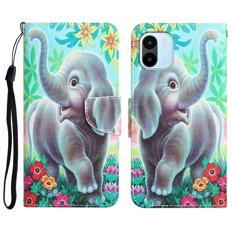 Θήκη τηλεφώνου από δέρμα με έγχρωμο σχέδιο για Xiaomi Redmi A1 (Ελέφαντας)