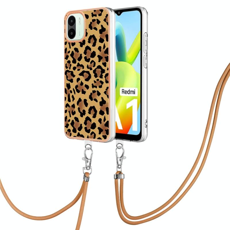 Θήκη Xiaomi Redmi A1 με Λουρί και Electroplating IMD Διπλής Όψης (Σχέδιο Λεοπάρ)