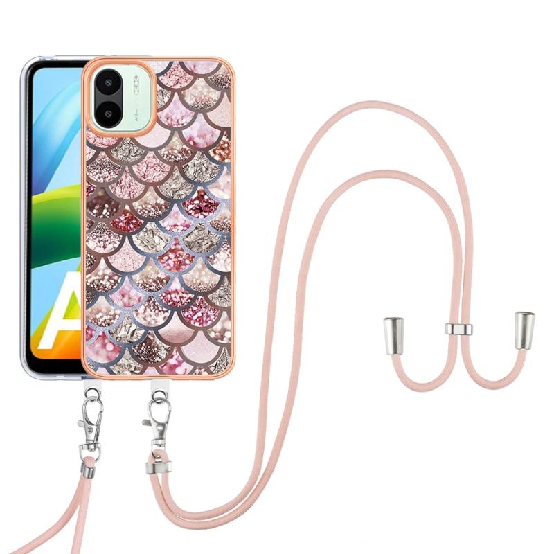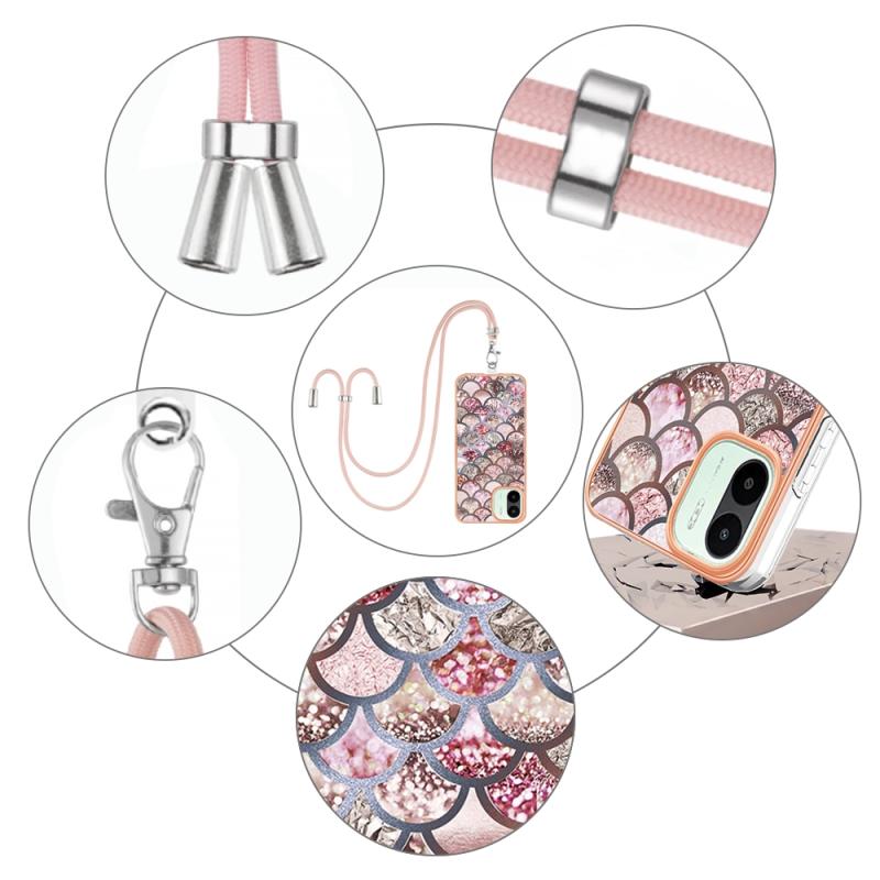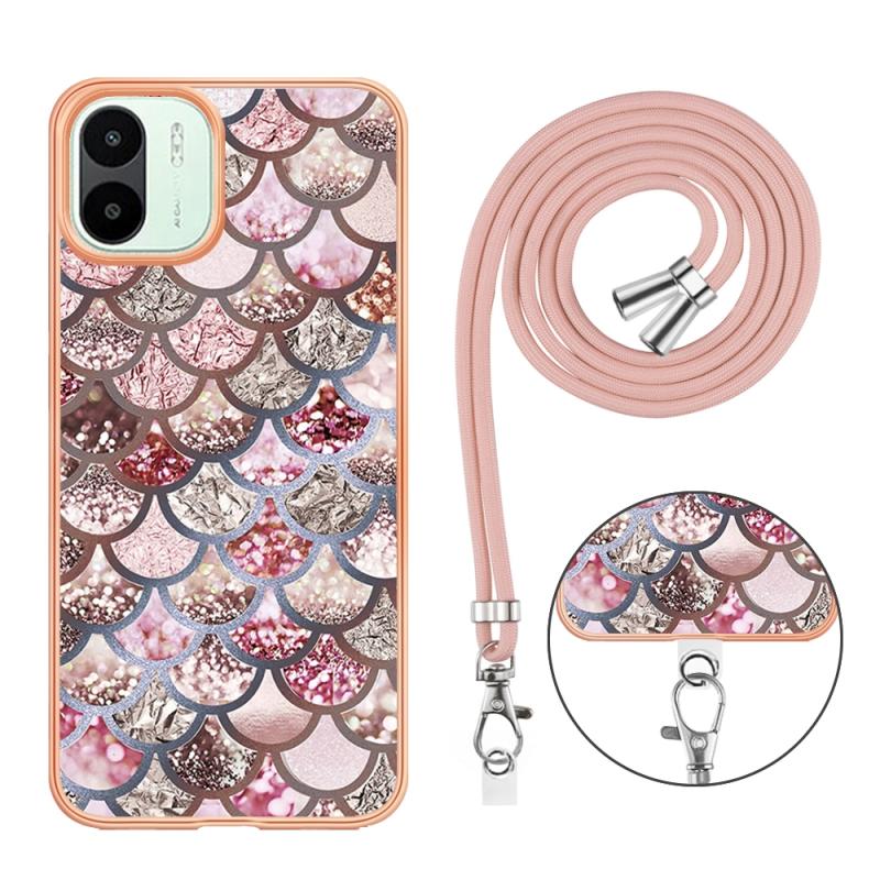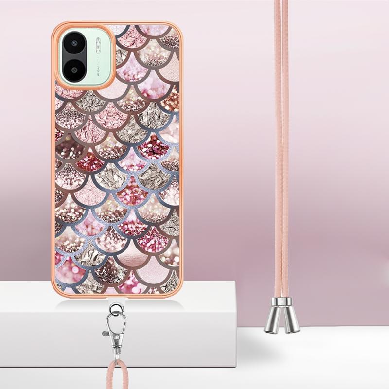 For Xiaomi Redmi A1 Electroplating IMD TPU Phone Case with Lanyard(Pink Scales)