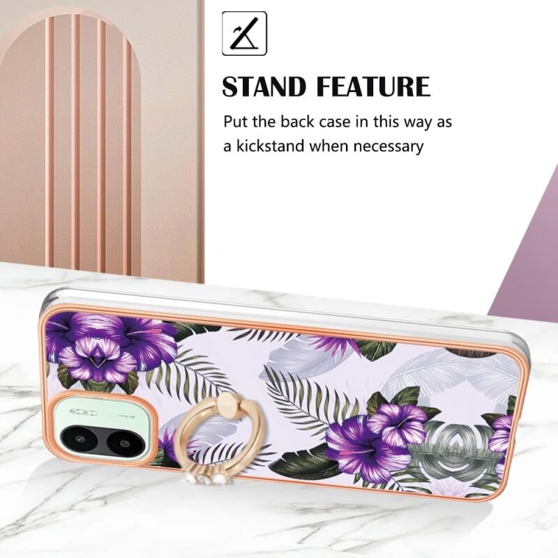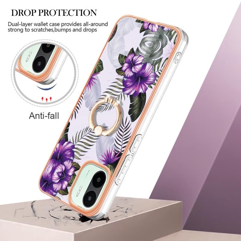For Xiaomi Redmi A1 Electroplating IMD TPU Phone Case with Ring(Purple Flower)
