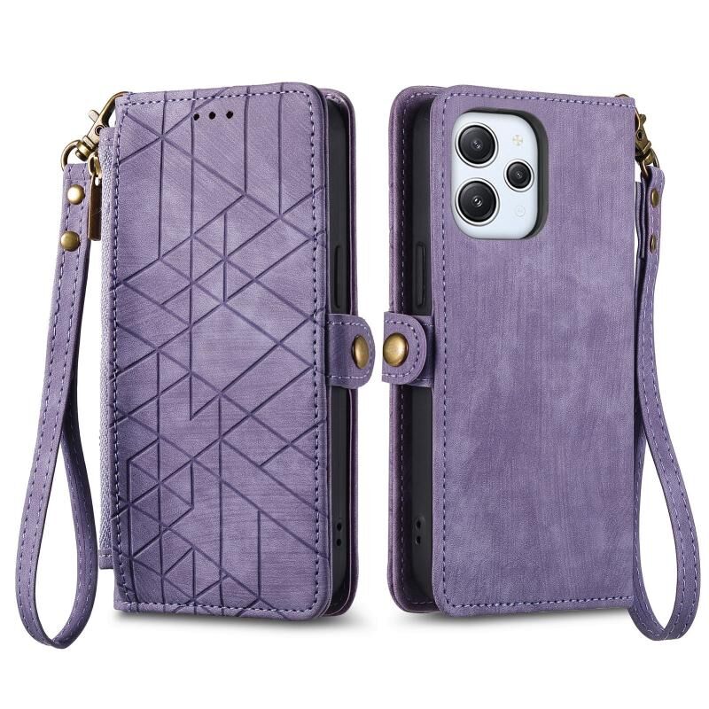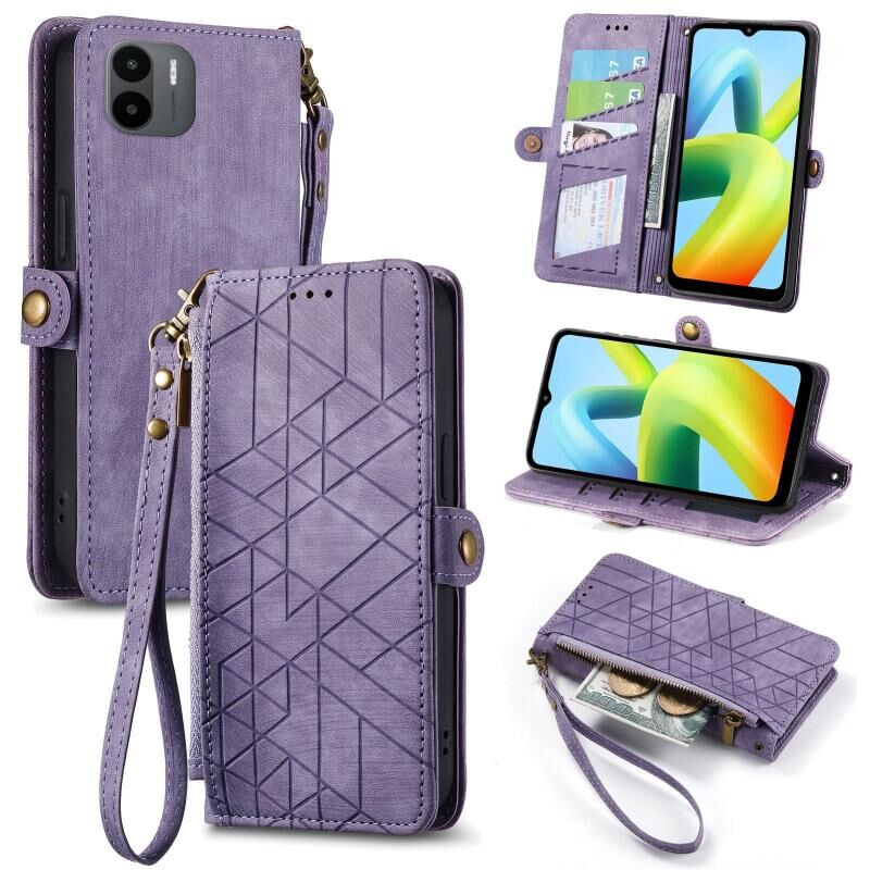 Για Xiaomi Redmi A1 γεωμετρική φερμουάρ πορτοφόλι πλευρά πόρπη δερμάτινη θήκη τηλεφώνου (μοβ)