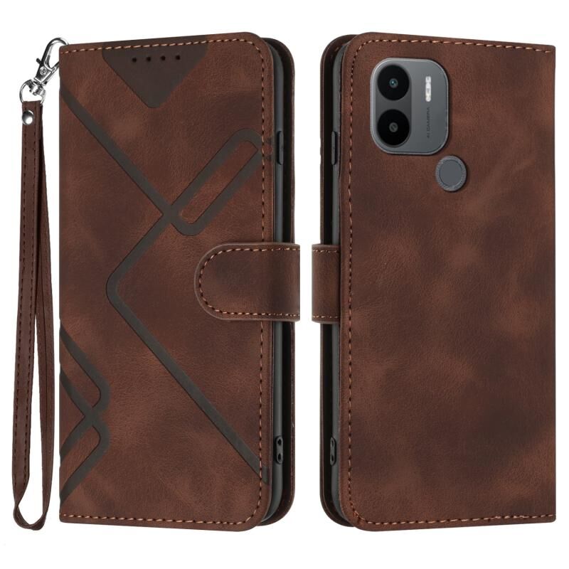 Για Xiaomi Redmi A1 + Γραμμή μοτίβο δέρμα δέρμα αίσθηση τηλέφωνο υπόθεση (καφέ)