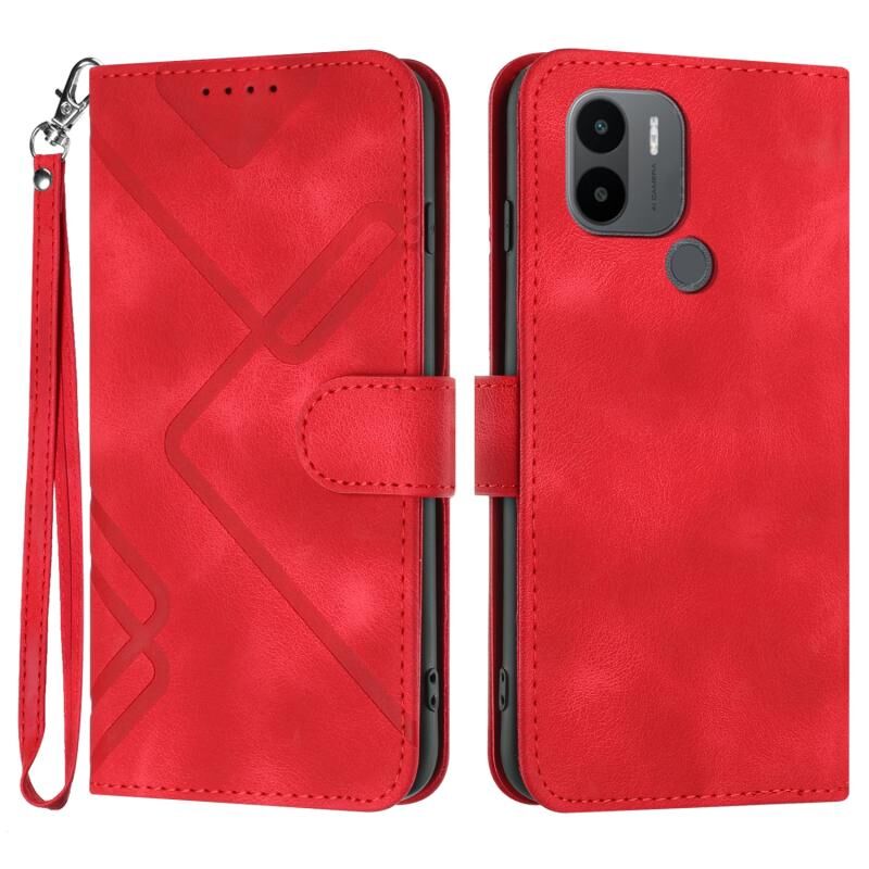 Για Xiaomi Redmi A1 + Γραμμή μοτίβο δέρμα δέρμα αίσθηση υπόθεση τηλεφώνου (κόκκινο)
