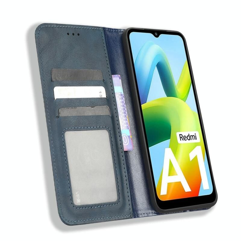 Για Xiaomi Redmi A1 Μαγνητική πόρπη ρετρό υφή δερμάτινη θήκη τηλεφώνου (μπλε)