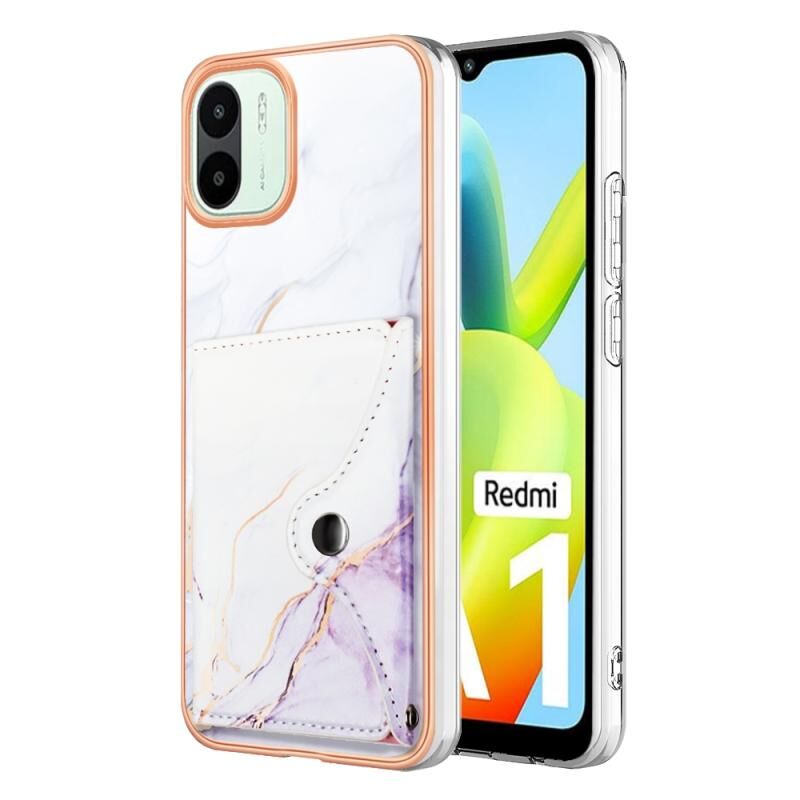 Θήκη κινητού τηλεφώνου με κάρτες IMD και σχέδιο μαρμάρου για Xiaomi Redmi A1 (Λευκό Γαλαξιακό Μάρμαρο)
