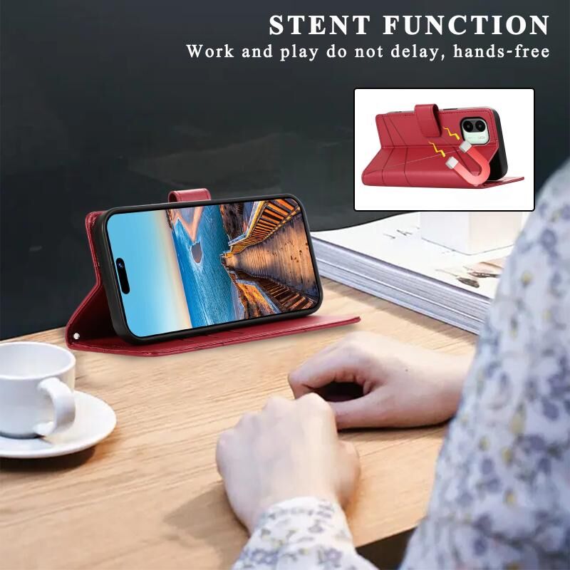 Θήκη τηλεφώνου Xiaomi Redmi A1 από γνήσιο δέρμα PU με ανάγλυφη υφή και λεπτομέρεια γραμμής (Κόκκινο)