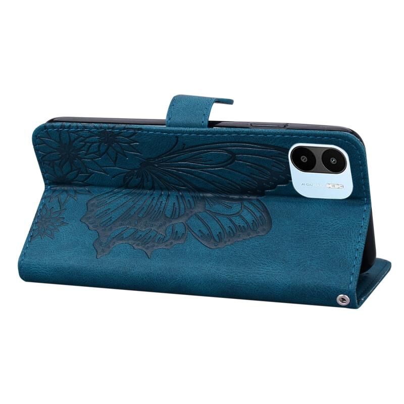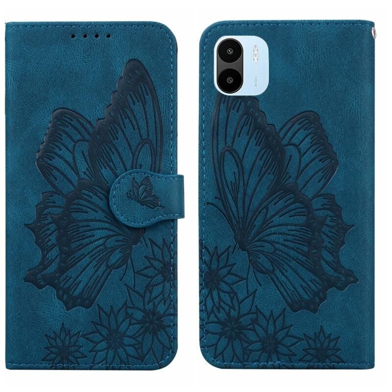 Θήκη τηλεφώνου Xiaomi Redmi A1 με ανάγλυφο σχέδιο πεταλούδων, υφή retro, οριζόντια αναδίπλωση από δέρμα (Μαύρο)