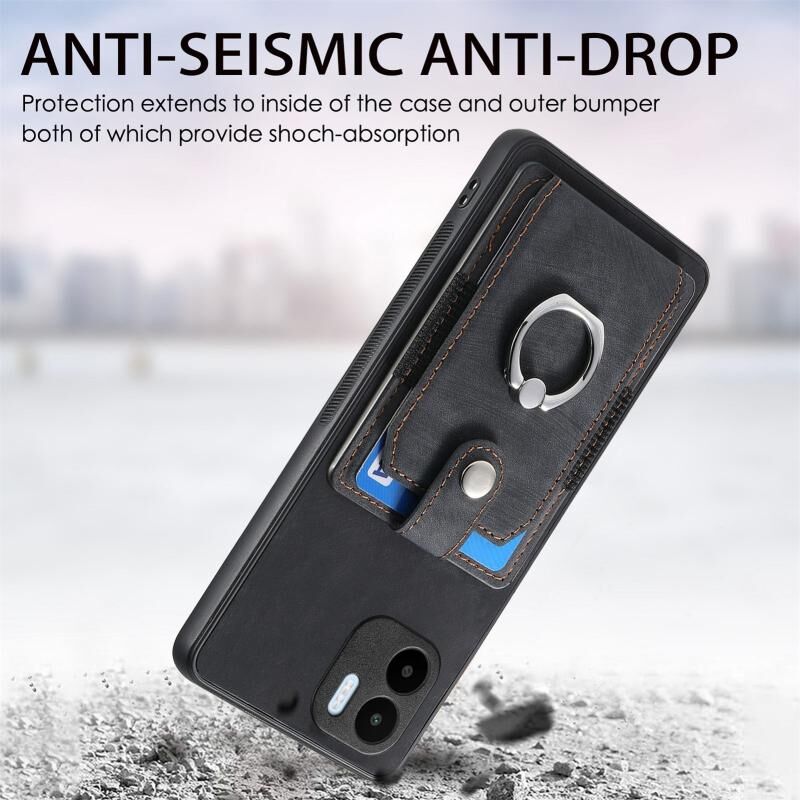 Για Xiaomi Redmi A1 Ρετρό δέρμα αίσθηση δαχτυλίδι κάρτας πορτοφόλι υπόθεση τηλεφώνου (Μαύρο)