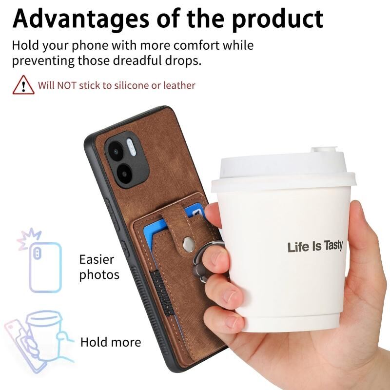 Για Xiaomi Redmi A1 Ρετρό δέρμα αίσθηση δαχτυλίδι κάρτας πορτοφόλι υπόθεση τηλεφώνου (Καφέ)