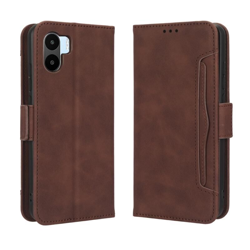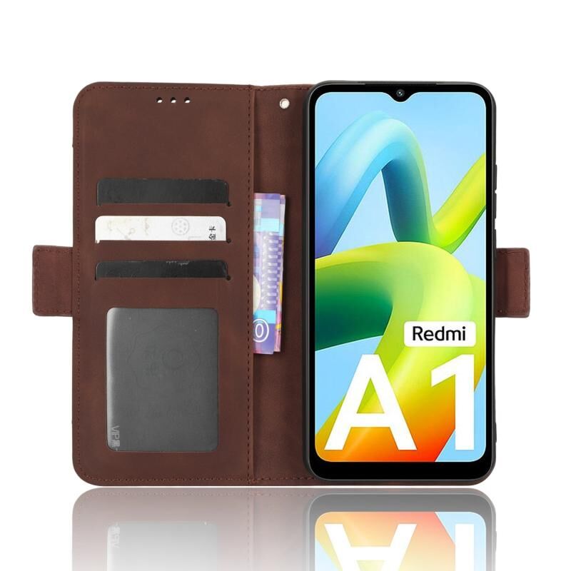 Για Xiaomi Redmi A1 δέρμα αίσθηση μοσχάρι υφή κάρτα υποδοχές δερμάτινη θήκη τηλεφώνου (καφέ)