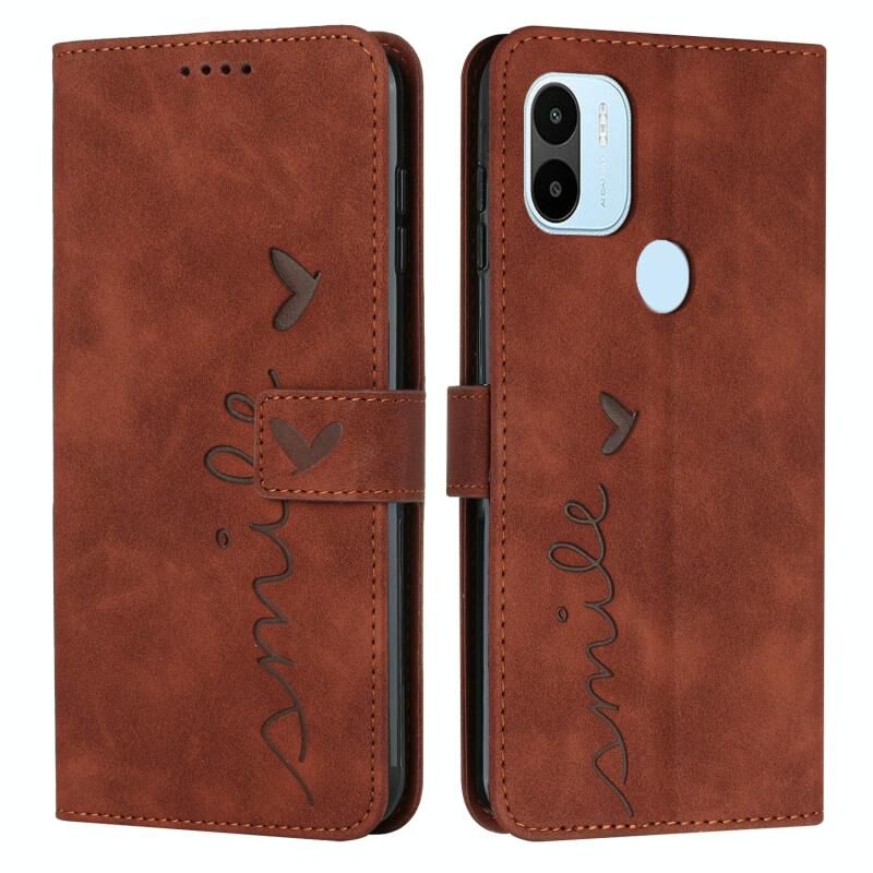 Για Xiaomi Redmi A1 + δέρμα αισθάνονται καρδιά ανάγλυφη δερμάτινη θήκη τηλεφώνου (καφέ)