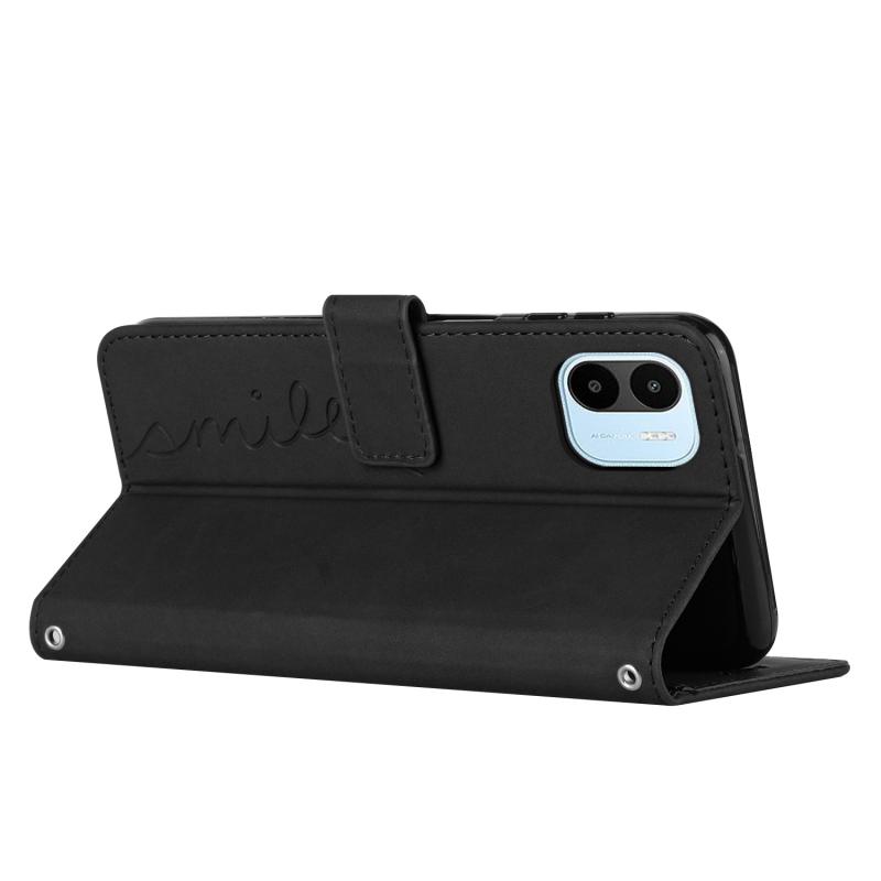 Για Xiaomi Redmi A1 Θήκη Δερμάτινη με Λουρί και Σχέδιο Καρδιάς (Μαύρο)