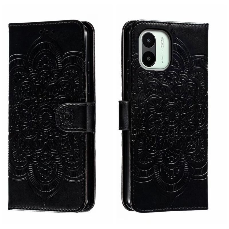 Για Xiaomi Redmi A1 Sun Mandala ανάγλυφο μοτίβο τηλέφωνο δερμάτινη θήκη (Μαύρο)