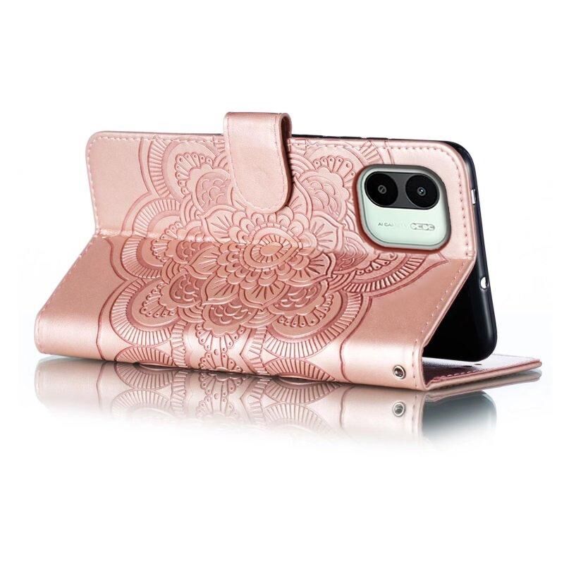 Για Xiaomi Redmi A1 Sun Mandala ανάγλυφο μοτίβο τηλέφωνο δερμάτινη θήκη (Ροζ χρυσός)