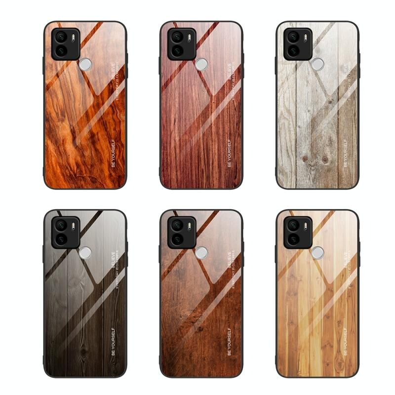 Για Xiaomi Redmi A1 + Wood Grain Glass TPU τηλέφωνο υπόθεση (σκούρο καφέ)