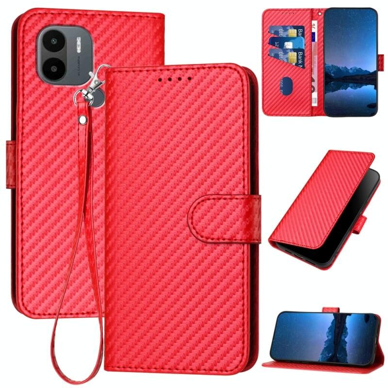 Για Xiaomi Redmi A1 + YX0070 Carbon Fiber πόρπη δερμάτινη θήκη τηλεφώνου με κορδόνι (κόκκινο)