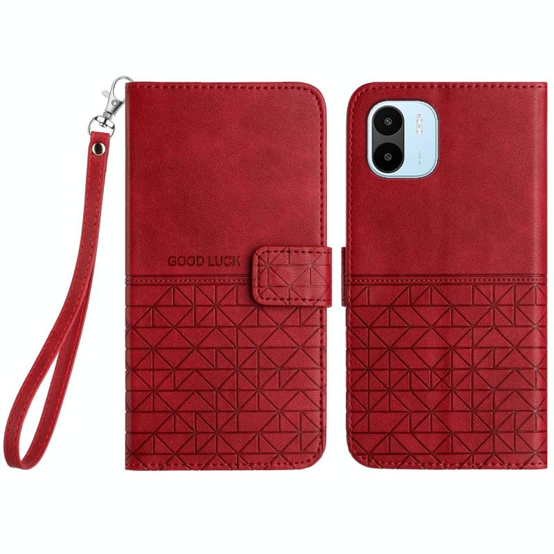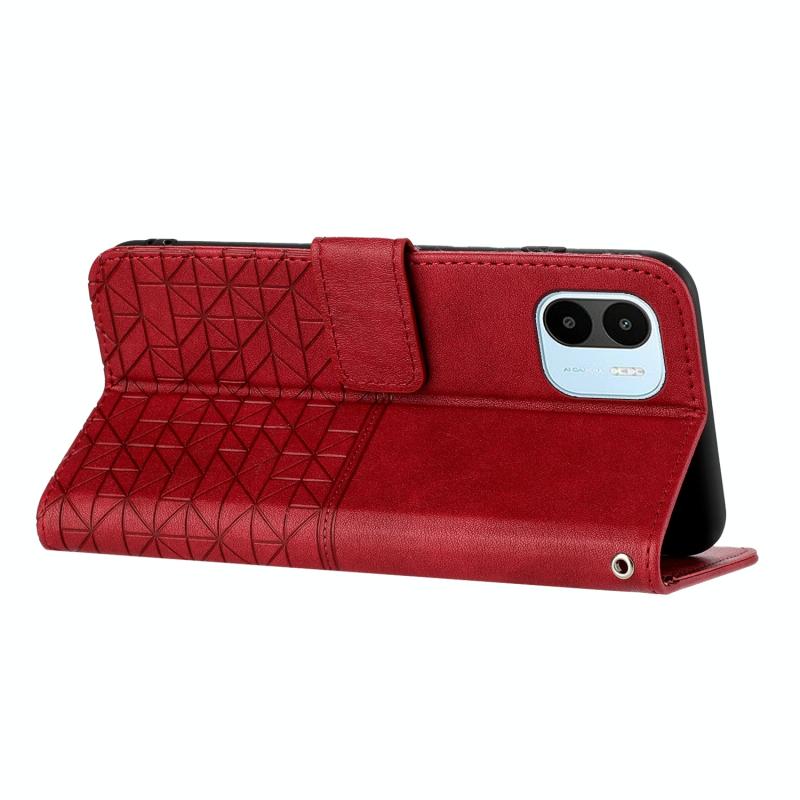 Θήκη δερμάτινη με κορδόνι για Xiaomi Redmi A2 / A1 με υφή ρόμβου (Κόκκινο)