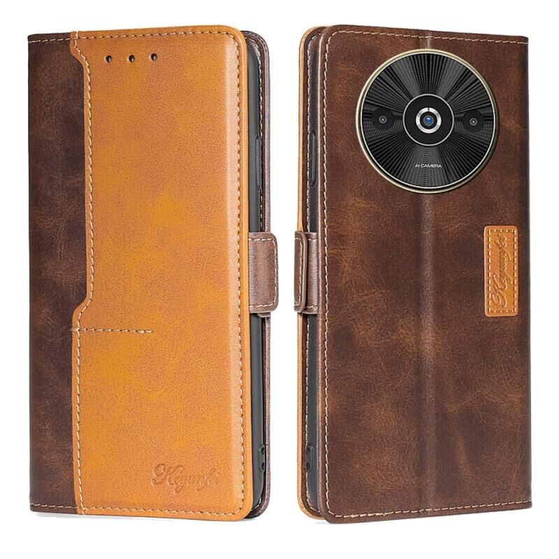 Για Xiaomi Redmi A3 4G αντίθεση χρώμα πλευρά πόρπη δερμάτινη θήκη τηλεφώνου (σκούρο καφέ + χρυσό)