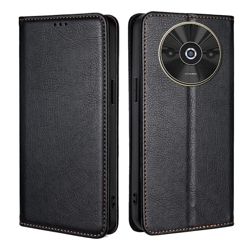 Για Xiaomi Redmi A3 4G γυαλιστερό λάδι στερεό χρώμα μαγνητική δερμάτινη θήκη τηλεφώνου (μαύρο)