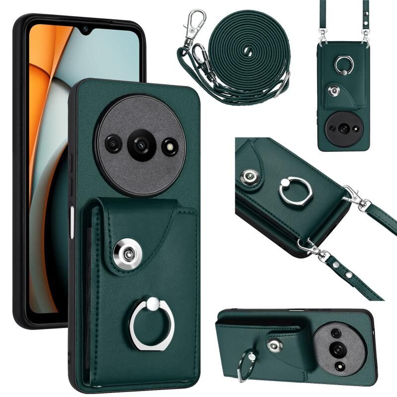 Για Xiaomi Redmi A3 4G Οργανική κάρτα τσάντα τσάντα δαχτυλίδι κάτοχος υπόθεση τηλεφώνου με μακρύ κορδόνι (πράσινο)