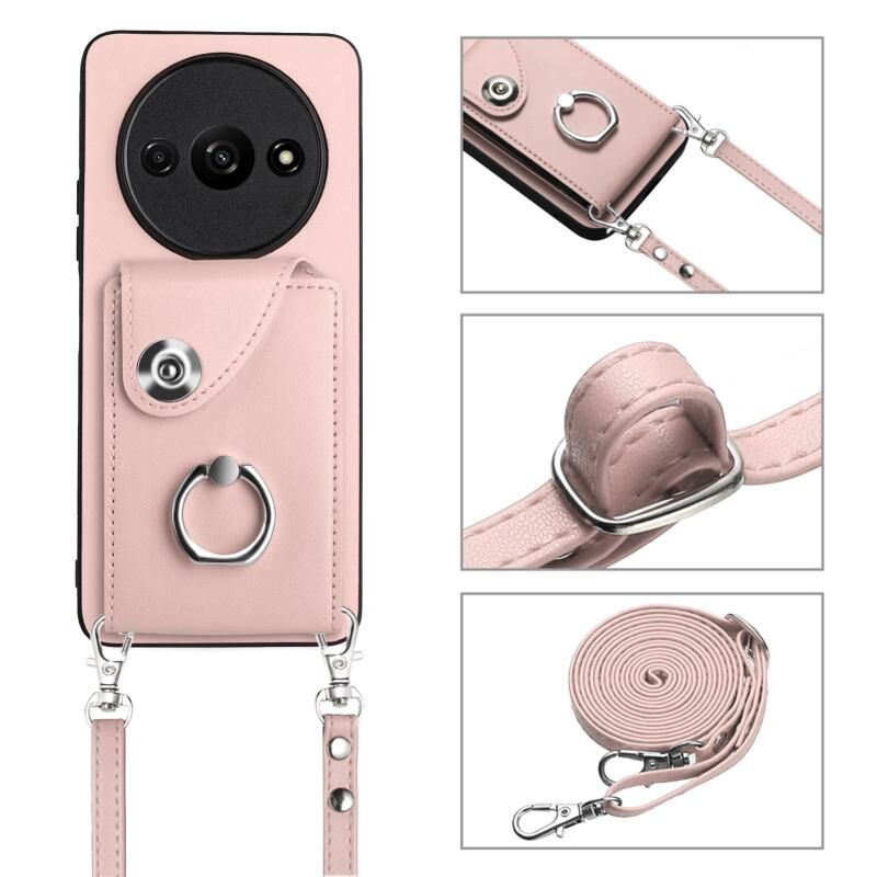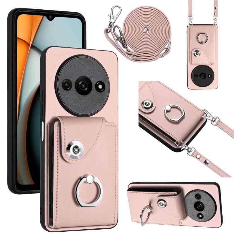 Για Xiaomi Redmi A3 4G Οργανική κάρτα τσάντα τσάντα δαχτυλίδι κάτοχος υπόθεση τηλεφώνου με μακρύ κορδόνι (ροζ)
