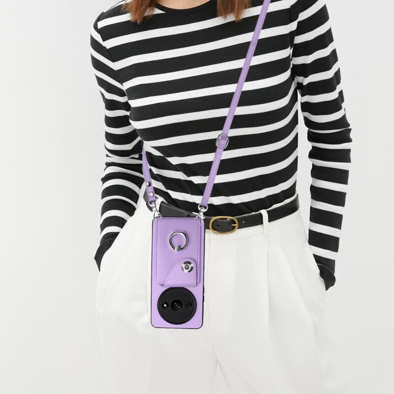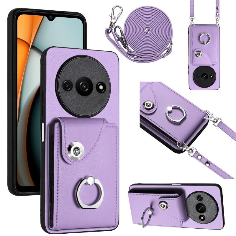 Για Xiaomi Redmi A3 4G Οργανική κάρτα τσάντα τσάντα δαχτυλίδι κάτοχος υπόθεση τηλεφώνου με μακρύ κορδόνι (μωβ)