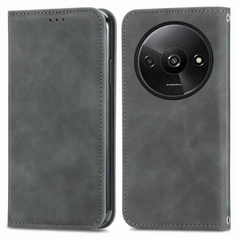 Για Xiaomi Redmi A3 4G ρετρό δέρμα αίσθηση μαγνητική Flip δέρμα τηλέφωνο υπόθεση (γκρι)