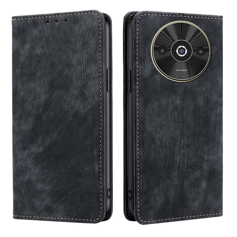 Για Xiaomi Redmi A3 4G RFID Anti-theft Brush Μαγνητική δερμάτινη θήκη τηλεφώνου (Μαύρο)