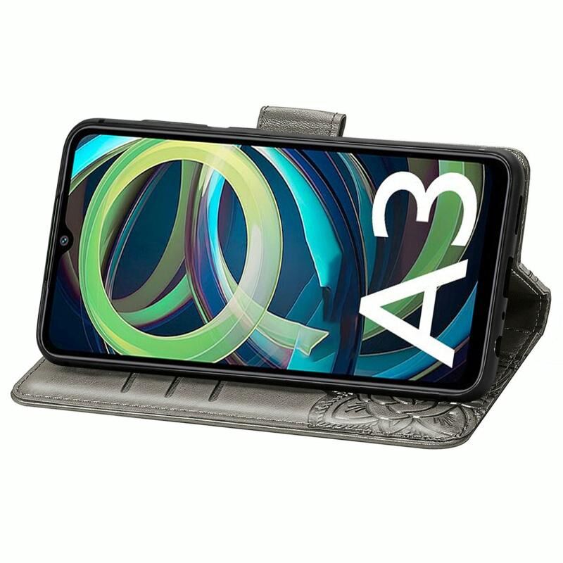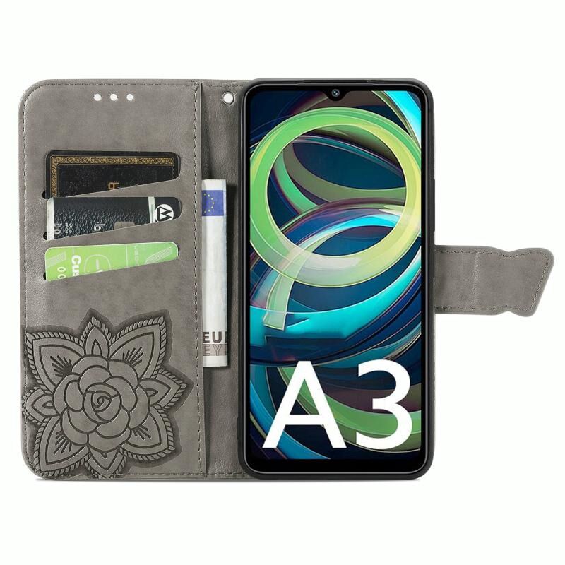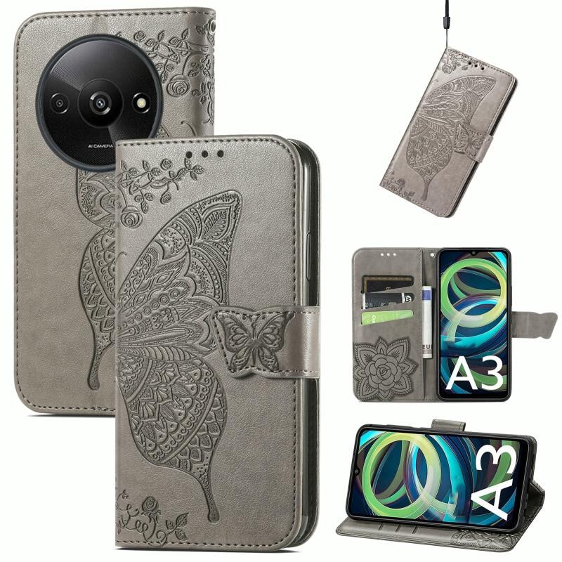 Θήκη τηλεφώνου δερμάτινη ανάγλυφη με σχέδιο πεταλούδας και λουλουδιών για Xiaomi Redmi A3 (Χρυσό ροζ)