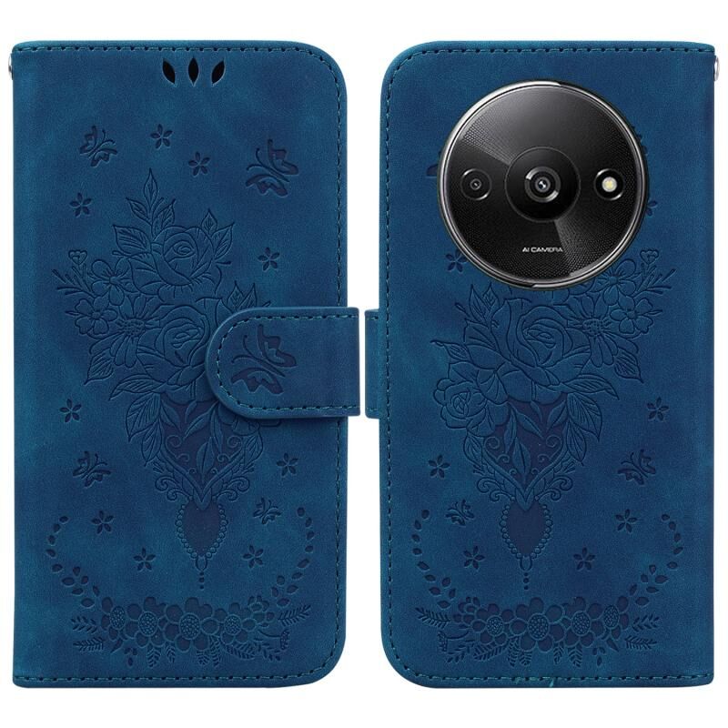 Για Xiaomi Redmi A3 Πεταλούδα Rose ανάγλυφη δερμάτινη θήκη τηλεφώνου (μπλε)