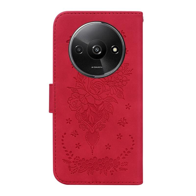 Για Xiaomi Redmi A3 Πεταλούδα Rose ανάγλυφη δερμάτινη θήκη τηλεφώνου (κόκκινο)