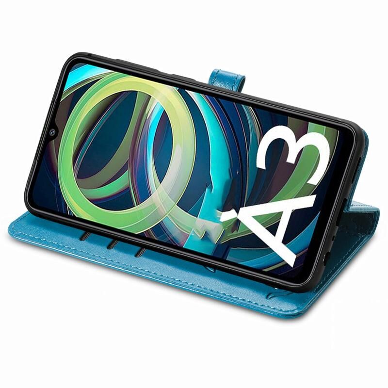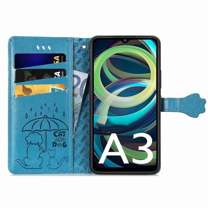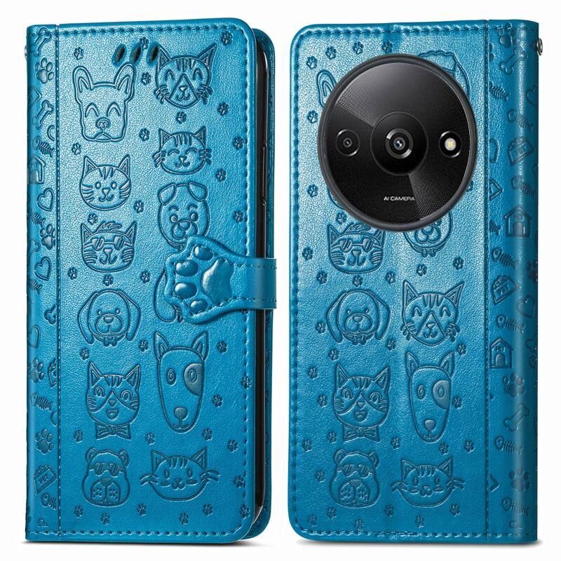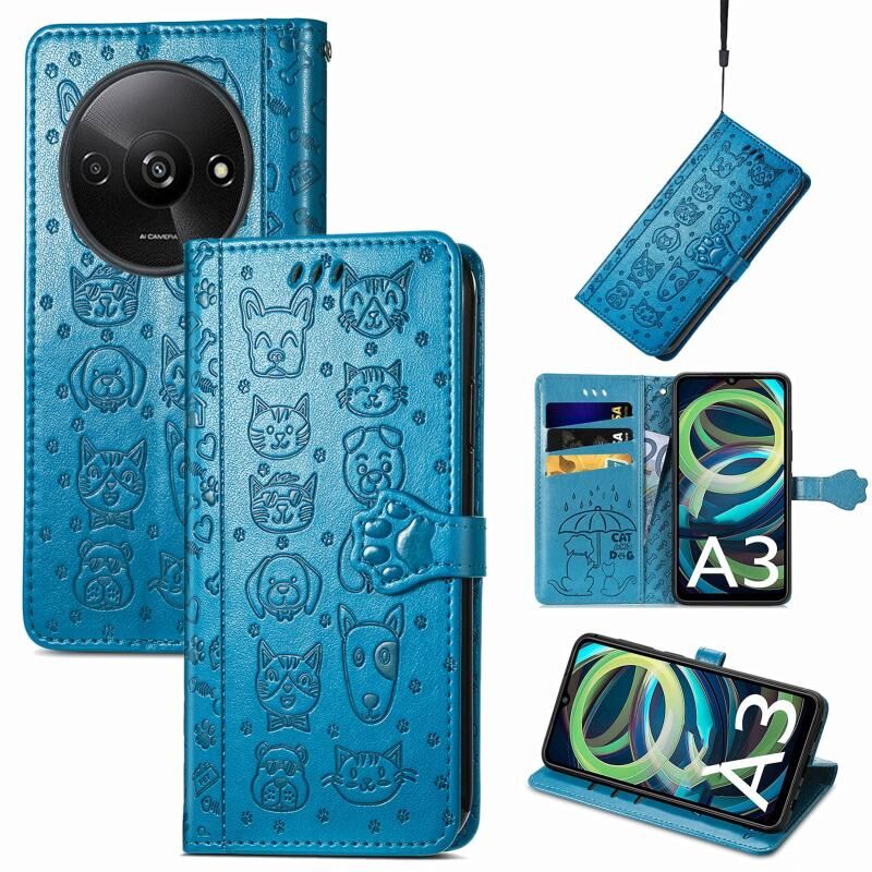 Θήκη τηλεφώνου δερμάτινη με ανάγλυφο σχέδιο γάτας και σκύλου για Xiaomi Redmi A3 (Μπλε)