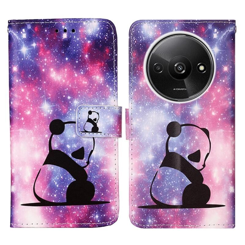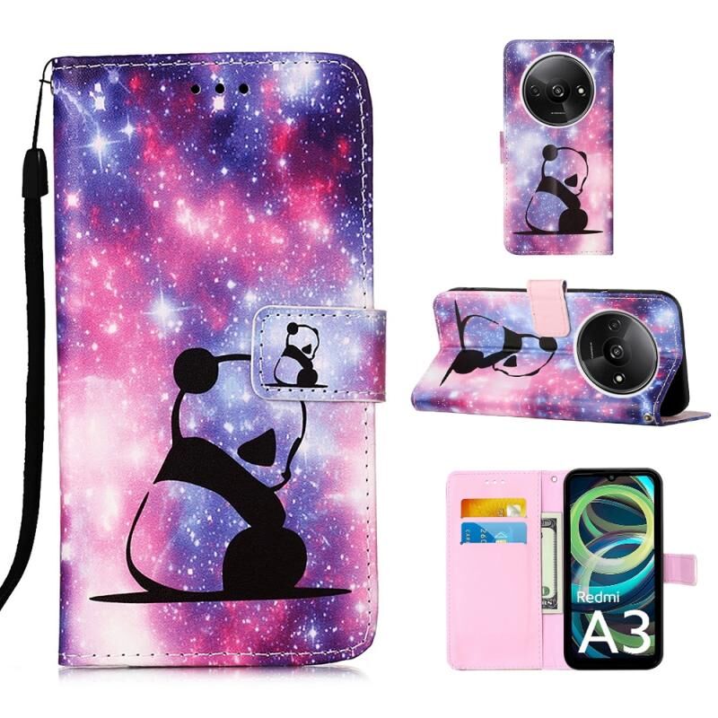 Θήκη τηλεφώνου από δέρμα με απλή ύφανση και πολύχρωμο σχέδιο (Baby Panda) για Xiaomi Redmi A3. (Κόκκινο)
